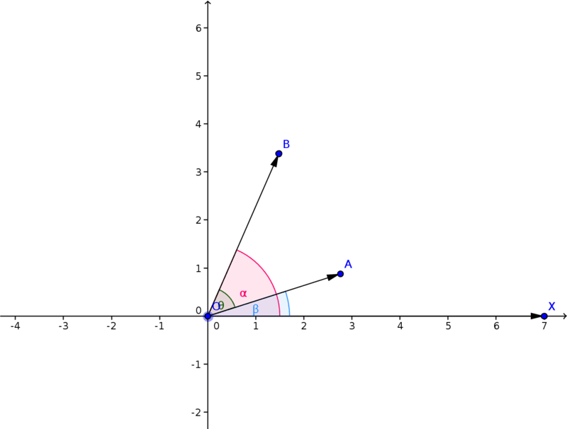 有向角 <a, b> 为向量 a 逆时针旋转到与向量 b 重合所经过的角度。